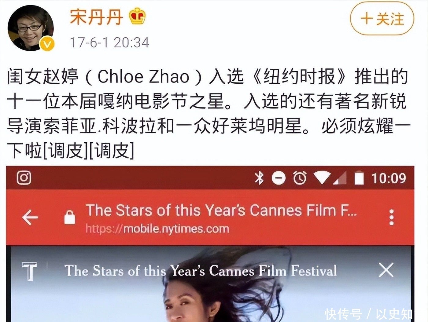 当赵婷入选《纽约时报》评选的“戛纳电影节闪耀之星”名单时,宋丹丹毫不掩饰内心的自豪。